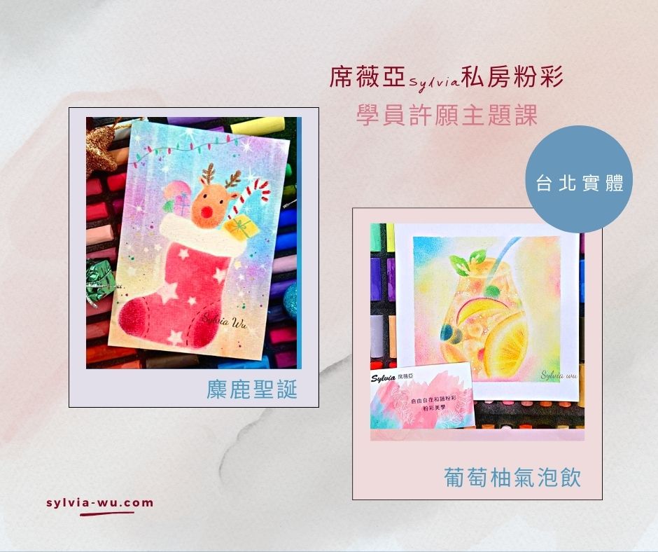 • 6月11日 (週日) 台北 ||主題粉彩畫|| – 麋鹿聖誕 / 葡萄柚氣泡飲