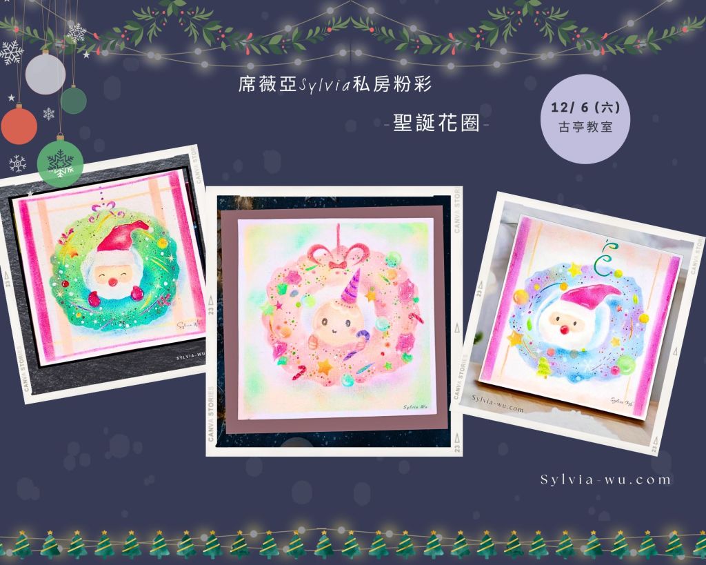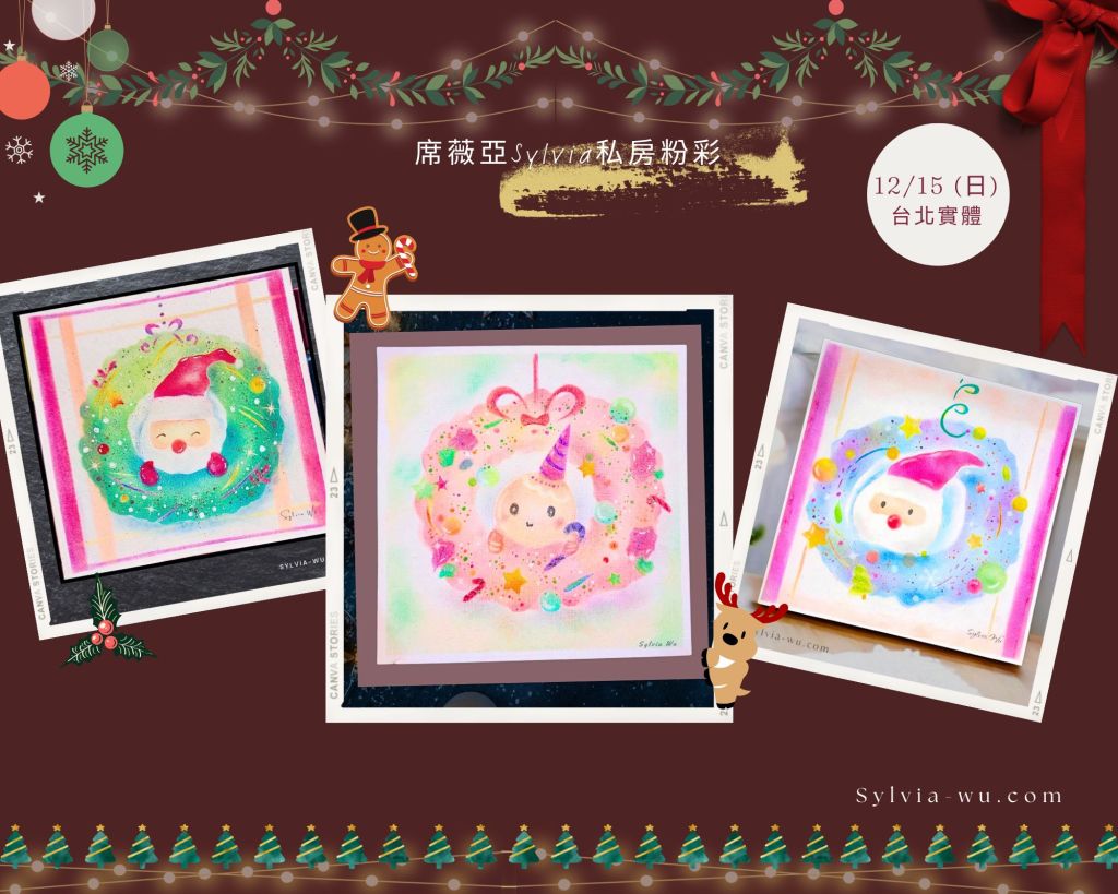 ●12/9 (六). 12/14 (四) |台北實體 主題粉彩畫 |- 聖誕花圈