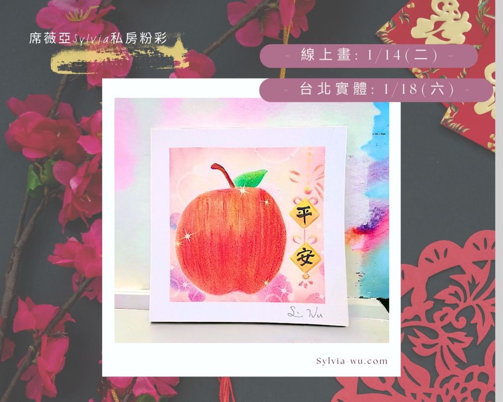 ●| 台北實體 + 線上畫 | -新年主題 : 蘋安 1/14 (二) . 1/18 (六)
