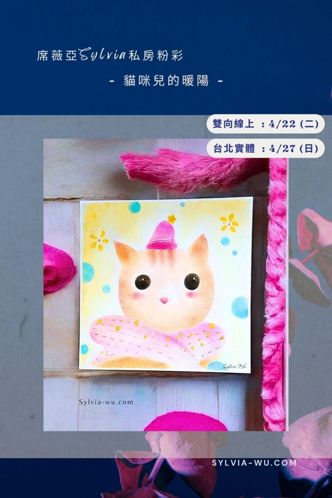● | 台北實體 + 線上畫 | -貓咪兒的暖陽 – : 雙向線上 : 4/22 (二) ; 台北實體: 4/27 (日)